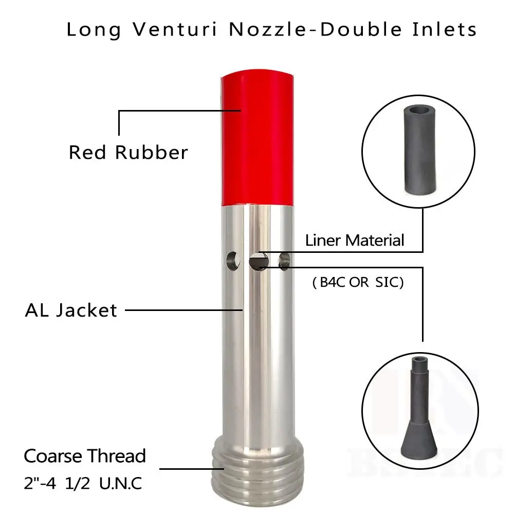 লং ভেনটুরি নজল-ডাবল ইনলেটস, মোটা থ্রেড 2”-4 1/2 U.N.C. আল জ্যাকেট এবং রাবার কভার সঙ্গে