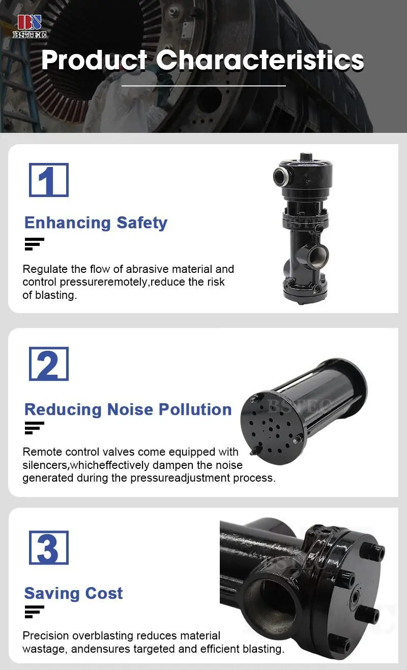 Daljinski upravljane posude za pjeskarenje, koje sadrže ove ventile, pružaju nekoliko prednosti. Oni omogućavaju operaterima da vrše preciznu kontrolu nad procesom miniranja, brzo zaustavljajući ili prilagođavajući nivoe pritiska po potrebi. Ova preciznost minimizira pretjerano pjeskarenje, smanjuje gubitak materijala i osigurava ciljano i efikasno miniranje.