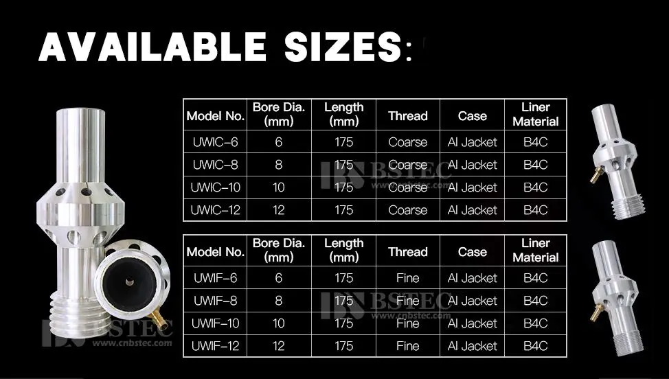 In BSTEC, pudete truvà e dimensioni più populari di ugelli di splutazioni à induzione d'acqua in i dui2″ -4 1/2 U.N.C. (50mm) coarse Contractor thread and 1-1/4” N.P.S.M. fine thread.