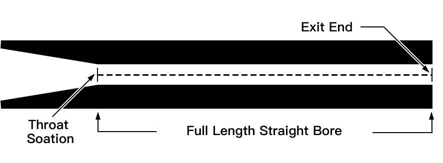 Tryska s přímým otvorem:Je rozdělena na dvě části obsahující sbíhavou vtokovou a celodélkovou přímou vrtnou část.