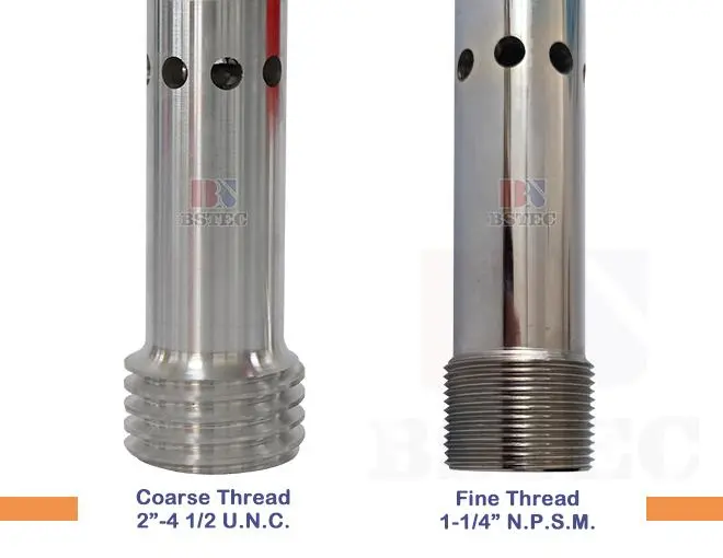 Grobes (Contractor) Gewinde:Industriestandard-Gewinde mit 4½ Gewinden pro Zoll (TPI) (114 mm), diese Art reduziert die Wahrscheinlichkeit von Quergewinden erheblich und ist viel einfacher zu installieren.