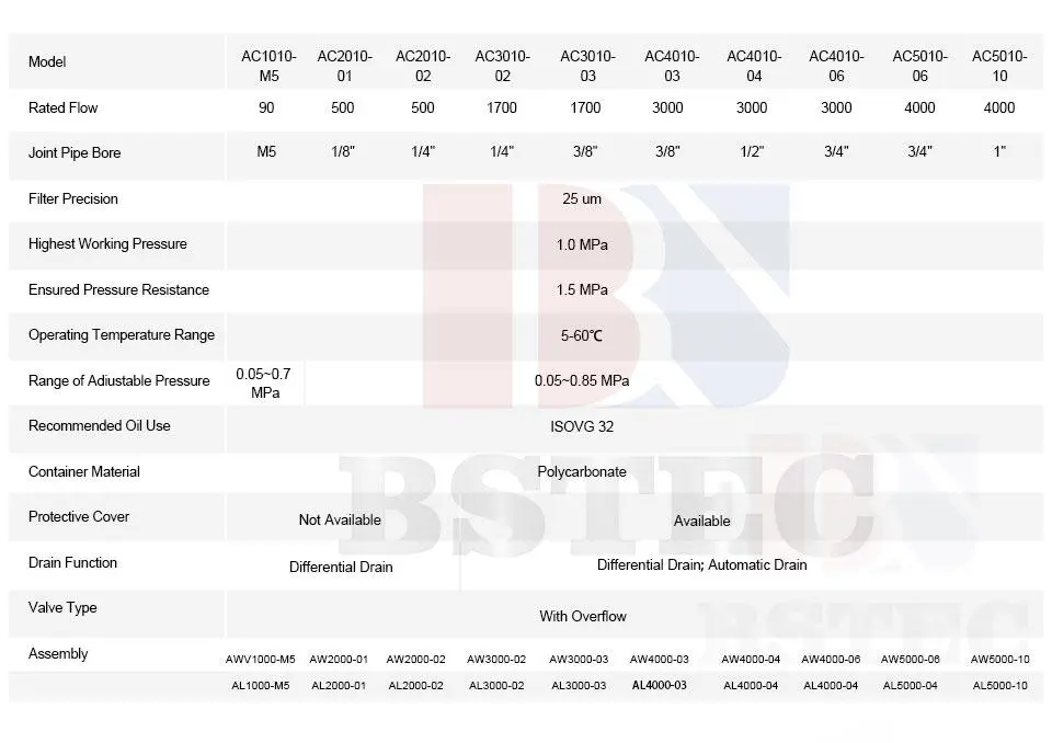 TheAC serieko hezetasun-bereizgailua25 μm-ko zehaztasuna duen aire-iragazkia, 1,0 MPa-ko gehienezko lan-presioa eta M5 eta 1" arteko juntura-hodiaren tamaina ditu.