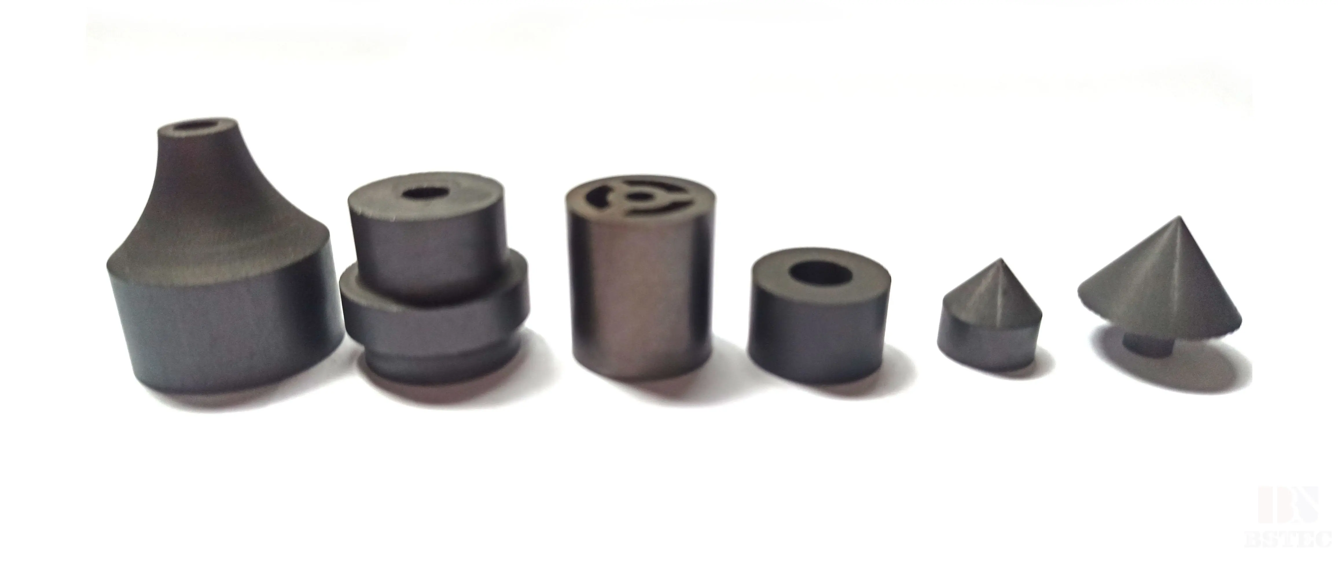 Bidh an nozzle boron carbide leis a’ chuideam èadhair as fheàrr agus sgrìobach a ’toirt seachad beatha seirbheis fhada. Tha boron carbide na dheagh roghainn airson sgrìoban creimneach leithid aluminium oxide. Mar as trice tha e còig gu deich tursan nas seasmhaiche na tungsten carbide. Tha nozzle silicon carbide coltach ri boron carbide nozzle, ach tha an caitheamh caitheamh aige nas ìsle na boron carbide, agus tha a’ phrìs nas saoire. Bidh tungsten carbide nozzle a’ toirt seachad beatha fhada agus eaconamaidh nuair a tha làimhseachadh garbh do-sheachanta.