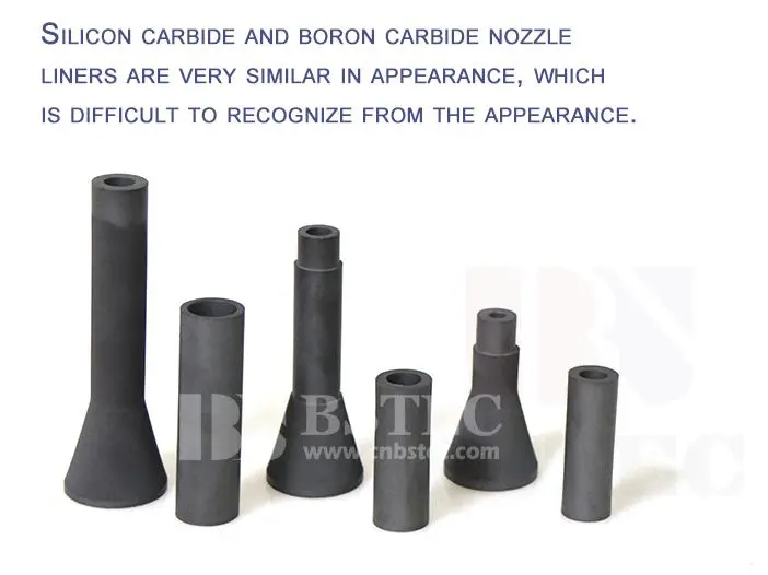 Bórkarbíð tvöfaldur Venturi stútur:langlífasta efnið sem notað er í sprengistúta. Það ber fimm til tíu sinnum meira en wolframkarbíð og kísilkarbíð um tvisvar til þrisvar sinnum þegar árásargjarn slípiefni eru notuð. Bórkarbíðstútur er tilvalinn fyrir árásargjarn slípiefni eins og áloxíð og valið steinefni þegar hægt er að forðast grófa meðhöndlun.
