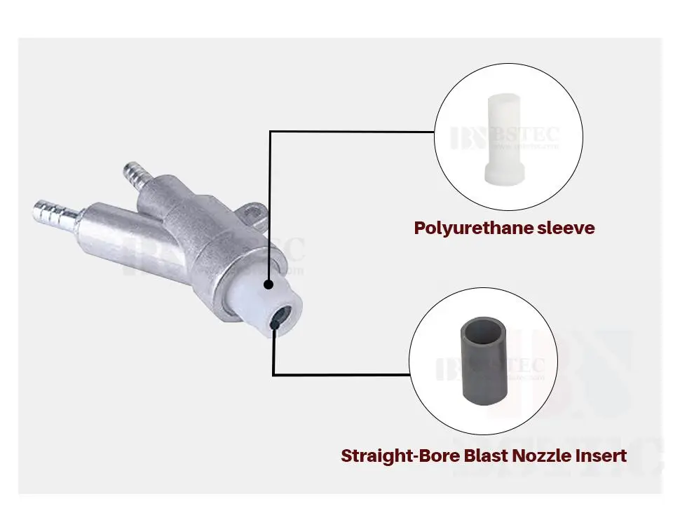 Соплолордун кирүүчү жана чыгуучу тешиктеринин конустары жана узундугу абразивдин соплодон чыгуу схемасын жана ылдамдыгын аныктайт. Узундугу канчалык узун болсо, жардыруу күчү ошончолук күчтүү болот.