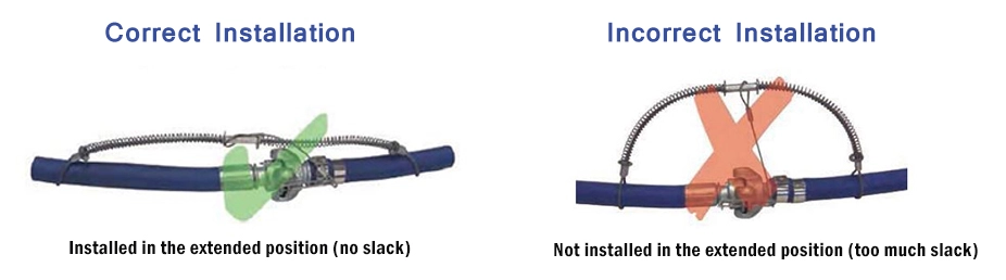 • नलीबाट नली अनुप्रयोगहरूमा सुरक्षाह्विप चेकस्थापना गर्नुपर्छकुनै ढिलो बिना पूर्ण विस्तारित स्थितिमा
