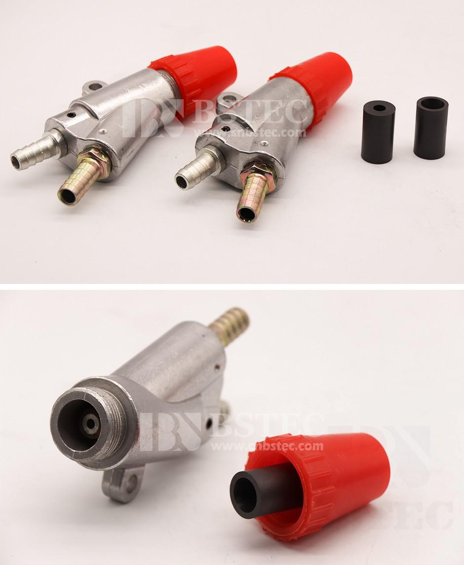 · Two types of abrasive inlets methods: thread type and straight-in type; for straight-in type, the abrasive inlet diameter is 22mm; for thread type, the abrasive inlet opening is 13mm; air jet openings are all 13mm