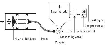 Step3: ایئر کمپریسر تیار کریں، پھر نوزل کو اس سطح کے ساتھ سیدھ میں رکھیں جس کا علاج کیا جائے، اور فاصلہ تقریباً 15 ~ 30 سینٹی میٹر رکھیں. ہم آسانی سے چلنے والی پائپوں کے اندر نوزلز کو تلاش کرنے کے لیے مناسب دھماکے کے اوزار استعمال کر سکتے ہیں۔